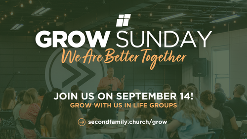 Make plans to join us on Sunday, September 14 for Grow Sunday! Our goal is to have everyone in Life Groups that day. Life Groups are one of the most important components we have to help people learn to follow Jesus. Our Life Groups provide a weekly, small-group Bible study experience where people gather together for study, fellowship, and encouragement. We want to help you G.R.O.W. and we do that through: